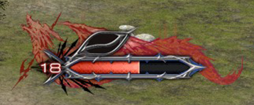 Il simbolo blu sulla sinistra indica l’attivazione della stance di difesa, Grit. Come sempre quest’ultima ridurrà i danni subiti, ma al contempo anche quelli inflitti. La barra rossa indica la quantità di Delirium e Bloodspiller (nuova skill) disponibile.