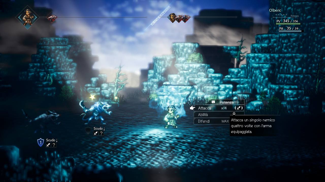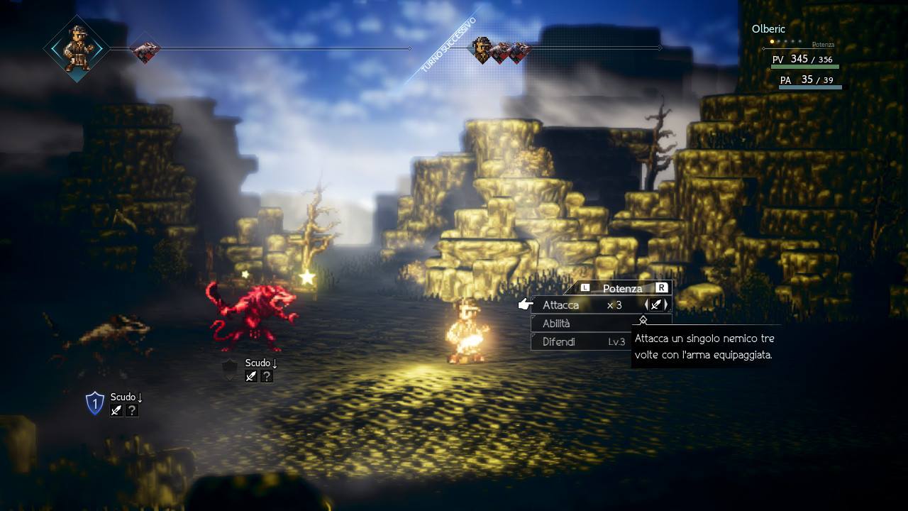 Una piccola nota da fare su quest’ultimo punto è che il potenziamento della difesa con i Punti Potenza è eseguibile solo da Olberic, il personaggio di classe guerriero e con statistiche più incentrate sull’attacco e sulla difesa fisica.