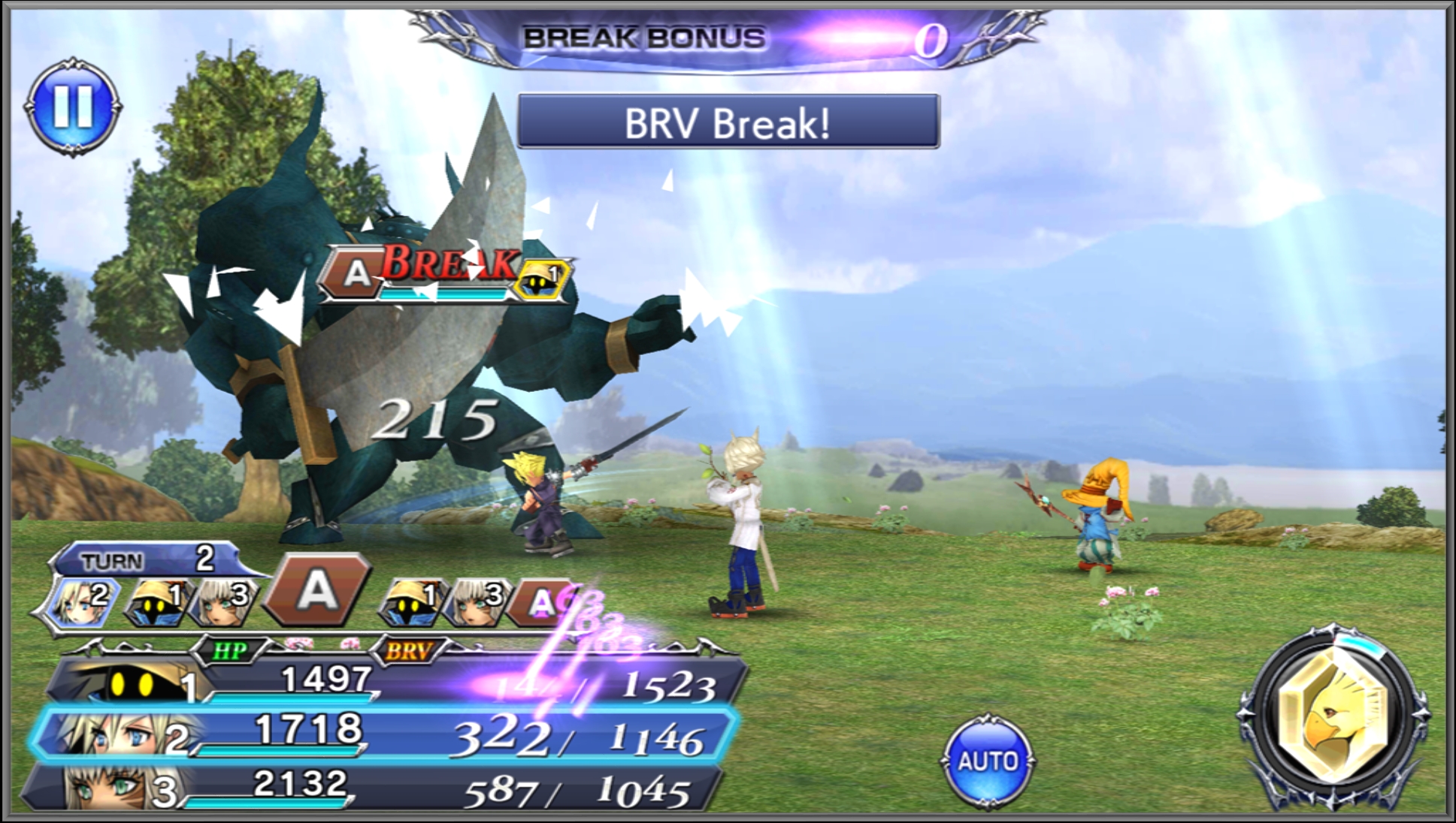 Il battle system a turni, in cui comanderemo tre dei tanti personaggi giocabili, presenta meccaniche presenti in Dissidia Final Fantasy come il sistema Bravery e i Punti Audacia.